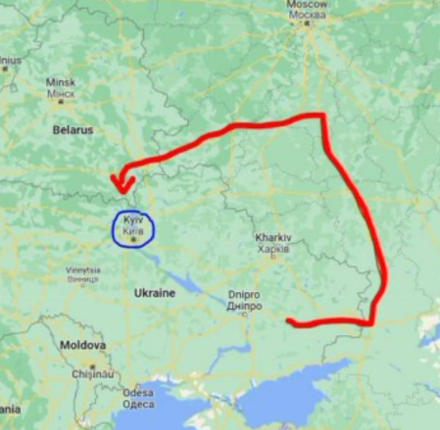 Here’s a map of how all that looks from above, tracking the overland route of the Wagnerites from Donbas to points beyond: