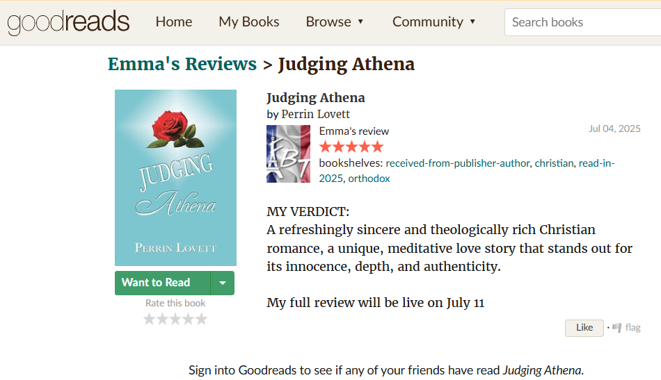 Icon, by Alabama author Georgia Briggs, is a stirring dystopian story told from an explicitly Orthodox Christian point of view. Briggs succeeds brilliantly in melding her faith with her genre. If I am not mistaken, this was her first novel, ergo, her success is an amazing achievement and a great testament to her ability. Icon is available from the Ancient Faith Store and Amazon. Also, please visit Briggs at her website.